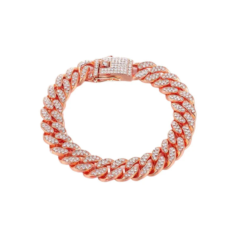 The Rhinestone Decor Cuban Link Dog Chain Collar Metal Quick Release designed to provide both style and functionality