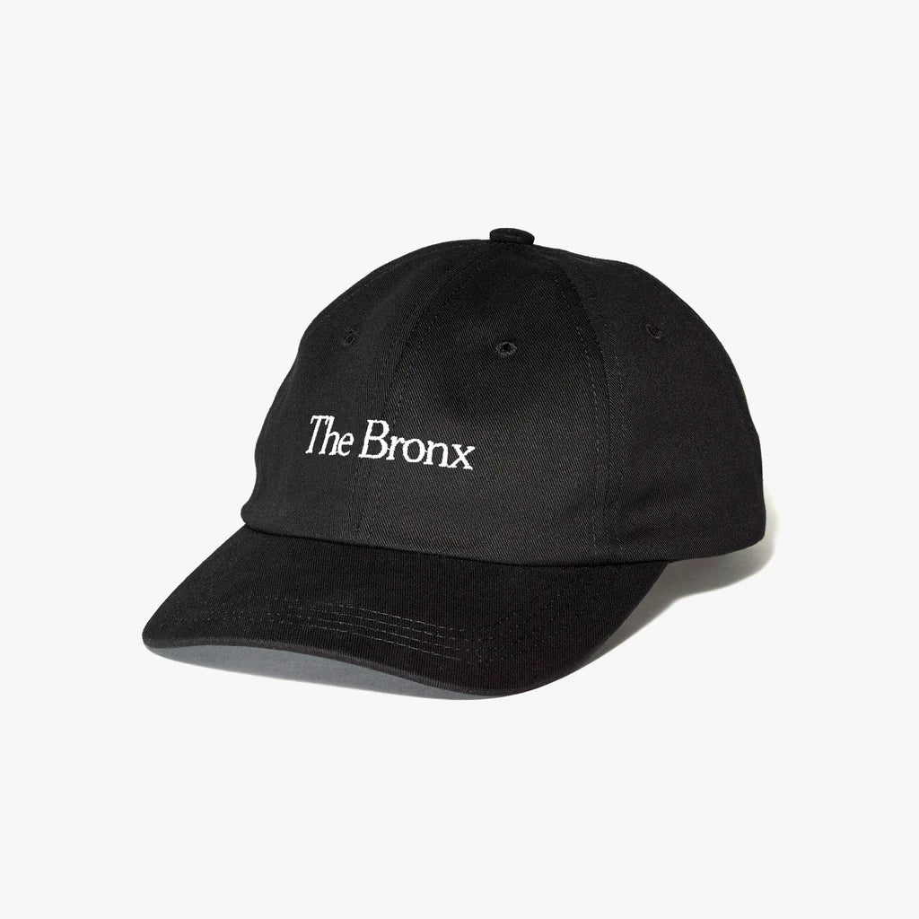 Each black cap is sanded and brushed after the dyeing process to give it an authentic worn look. Embroidered with white lettering, it has a medium profile, curved visor and threaded eyelets. The headband contains a solid brass clasp for adjusting. Each hat pays tribute to a borough or state and displays a small “T” logo on the back, showing it’s from The Times.